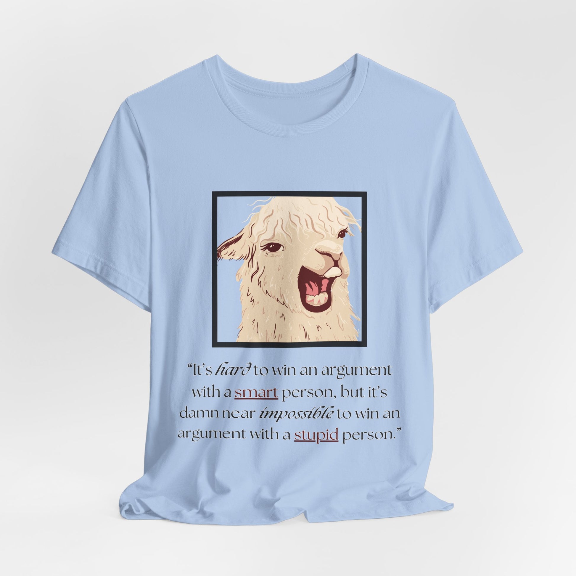 This classic unisex jersey short sleeve tee fits like a well-loved favorite. Soft cotton and quality print make users fall in love with it over and over again! These t-shirts have ribbed knit collars to bolster shaping. The crew neckline adds a classic, neat style that's perfect for accessorizing. The shoulders are tapered for a better fit over time. Dual side seams hold the garment's shape for longer. The tear-away label minimizes skin irritations.