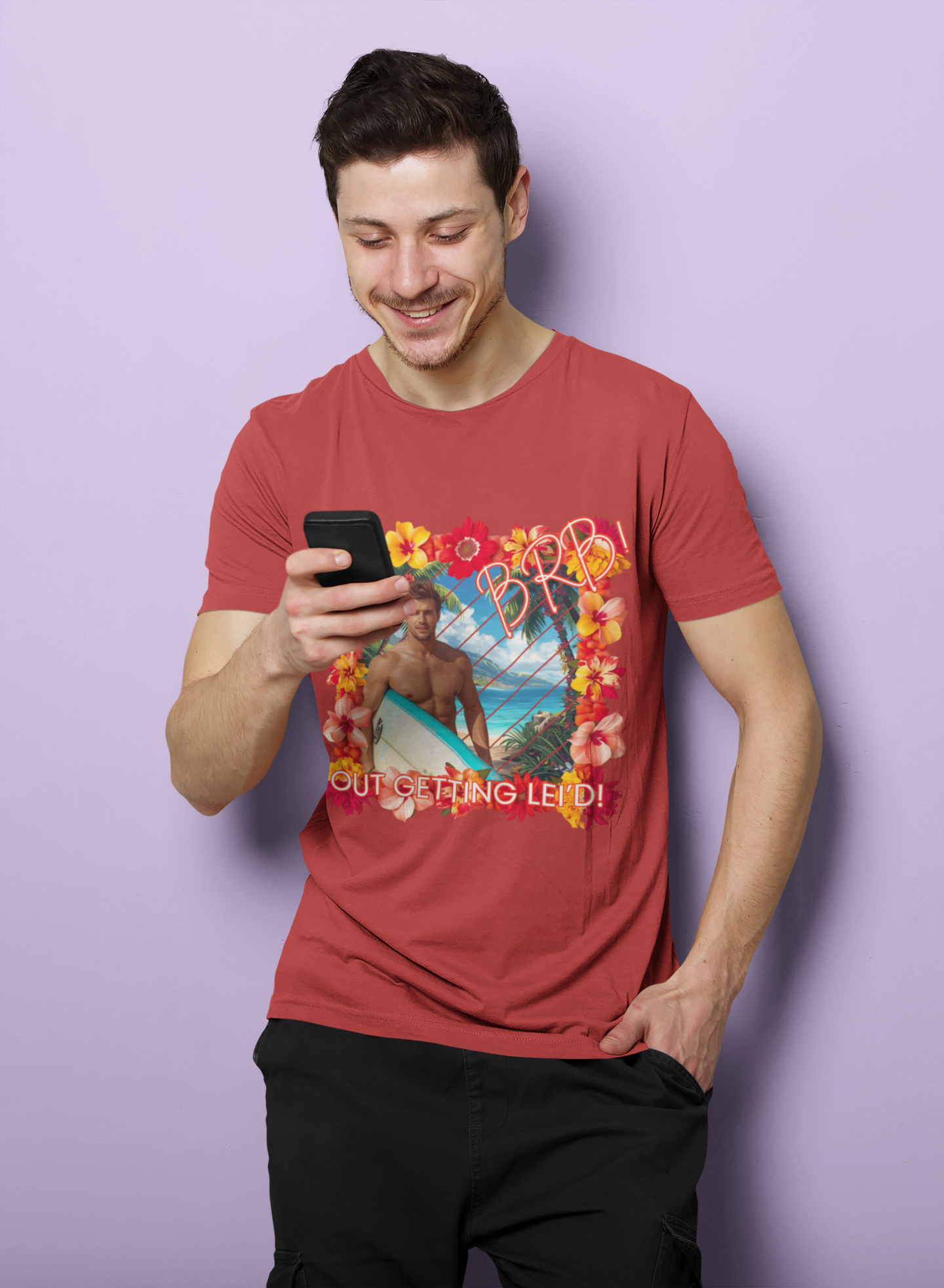 Hey there, and welcome! The 'Snarky' Design you're currently checking out is: “BRB! Getting Lei'd!”.