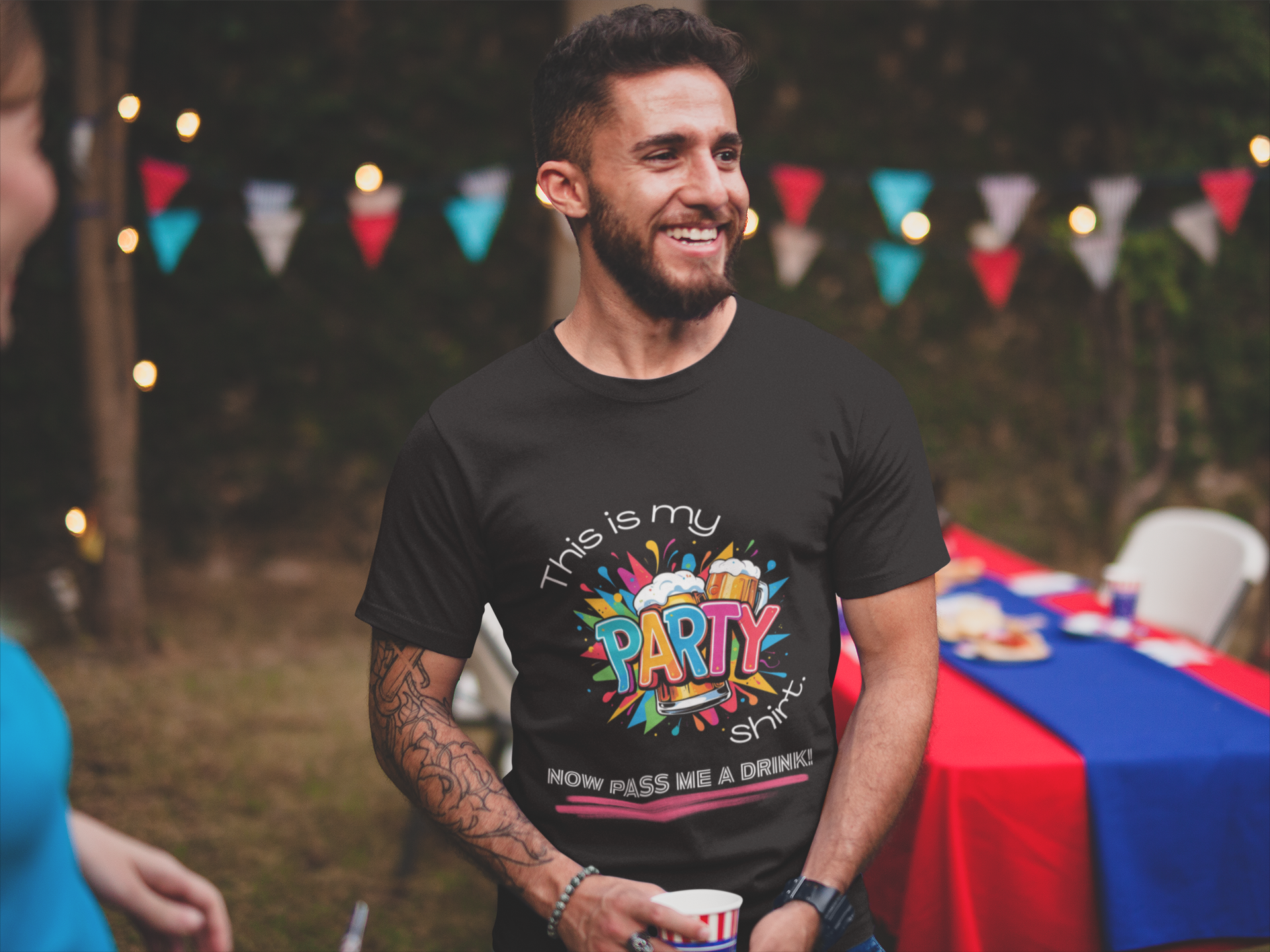 Hey there, and welcome! The 'Snarky' Design you're currently checking out is: “This Is My Party Shirt. Now Pass Me A Drink!”.